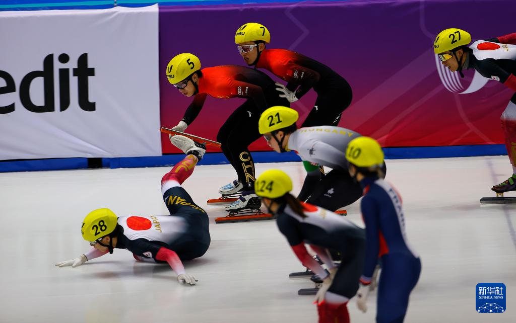 1月21日,中国队选手宋桂旭(7号)、李坤(5号)在比赛中交接棒。日本队选手宫田将吾(28号)在交接棒时摔倒。