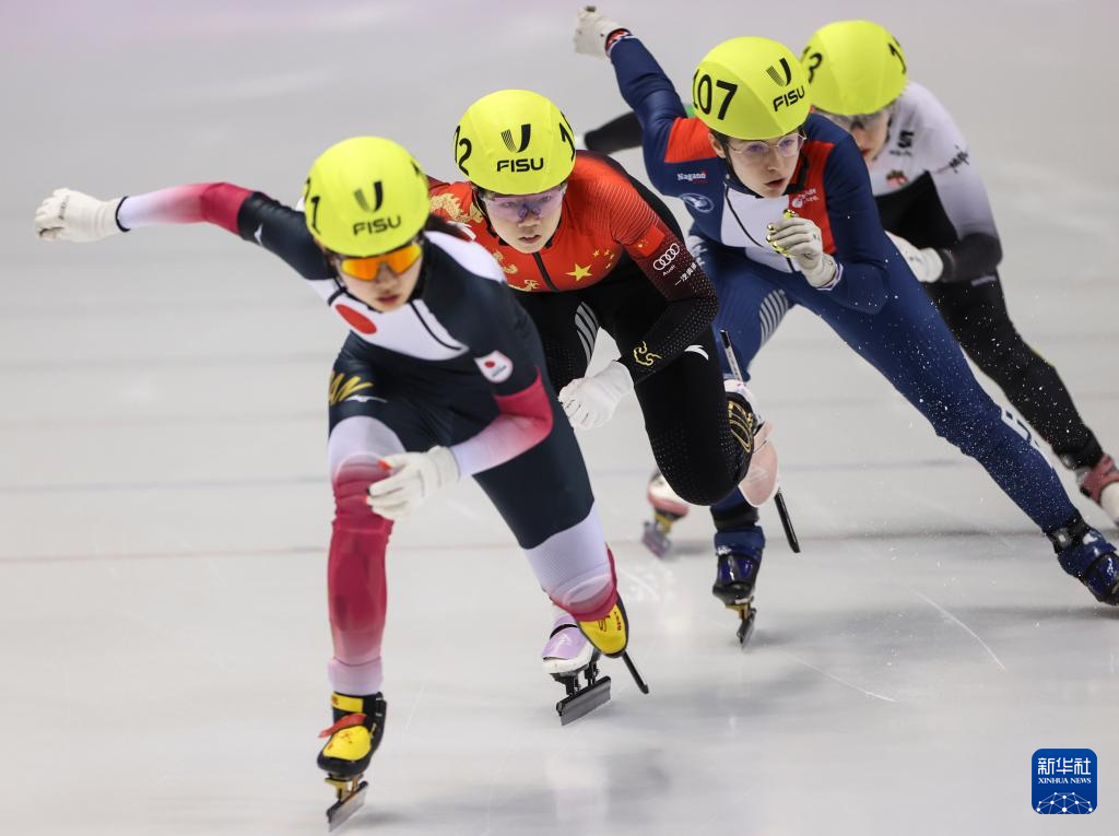 1月21日,中国队选手吕婉钰(左四)和张延(右三)在半决赛中交接棒。
