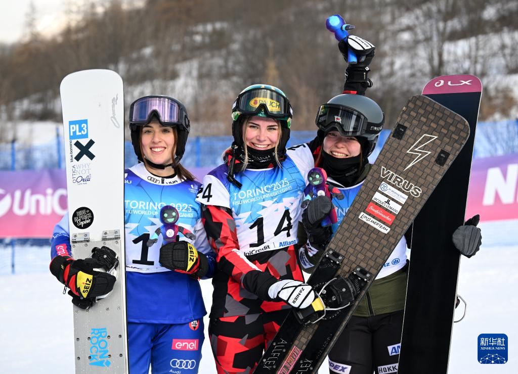 当日,在意大利巴多内基亚举行的2025年世界大学生冬季运动会单板滑雪女子平行大回转比赛中,奥地利选手凯因茨夺得冠军。