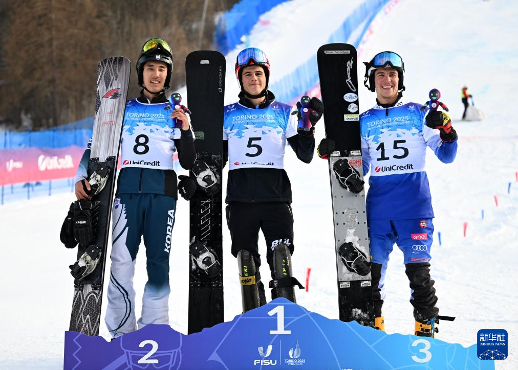 当日,在意大利巴多内基亚举行的2025年世界大学生冬季运动会单板滑雪男子平行大回转比赛中,保加利亚选手赞费罗夫夺得冠军,韩国选手马准颢和意大利选手兰奇纳分获亚军和季军。