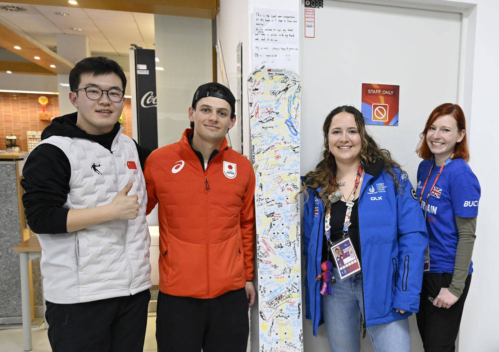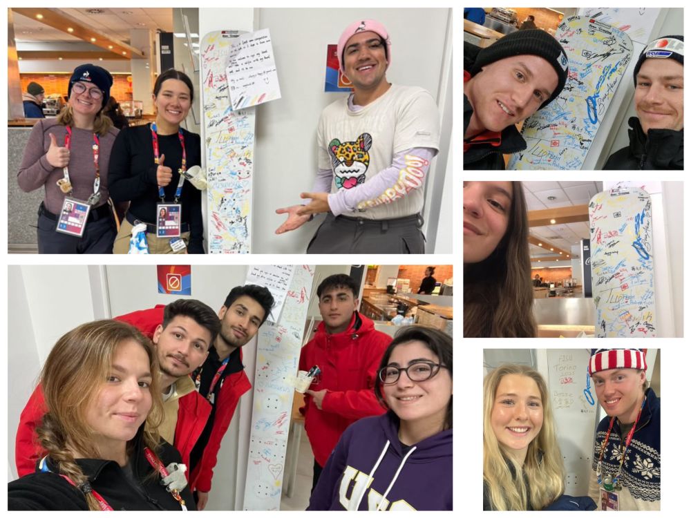 这是北京工业大学大三学生、中国单板滑雪选手王盛逸的“创意”,是运动员村的学生和工作人员共同完成的“杰作”。