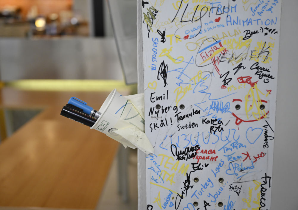 “白天粗略数一下,签名上百个,晚上还在增加。”王盛逸说,“很多签名看不出他们来自哪里,有些签名留了代表队,比如瑞典、瑞士、意大利、美国、波兰等等。”