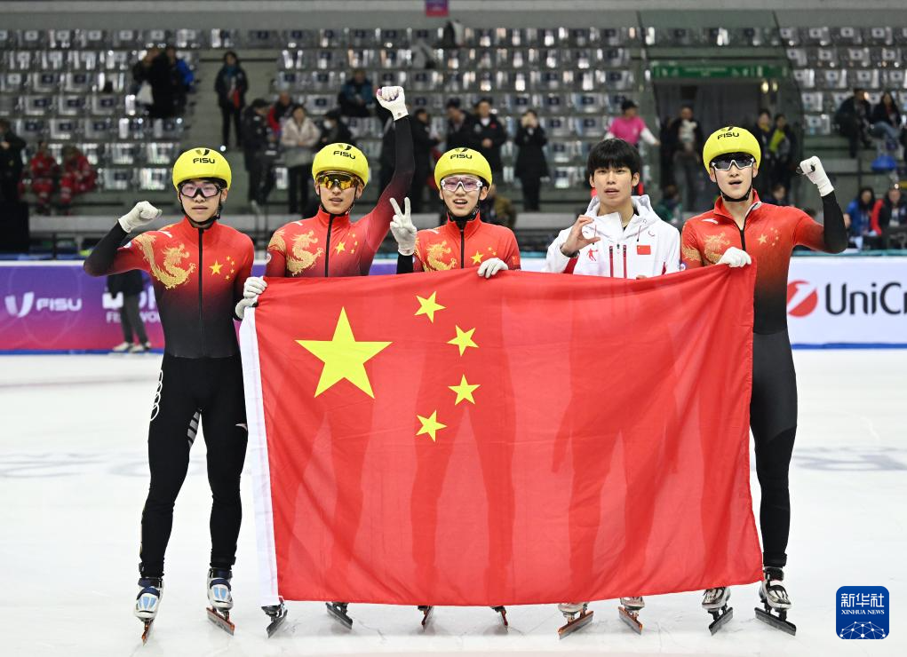 新华社意大利都灵1月23日电(记者许仕豪、肖亚卓)在意大利都灵进行的第32届世界大学生冬季运动会23日迎来最后一个比赛日。在短道速滑男子5000米接力比赛中,中国队获得冠军。这是中国代表团在本届大冬会上获得的第一枚金牌。
