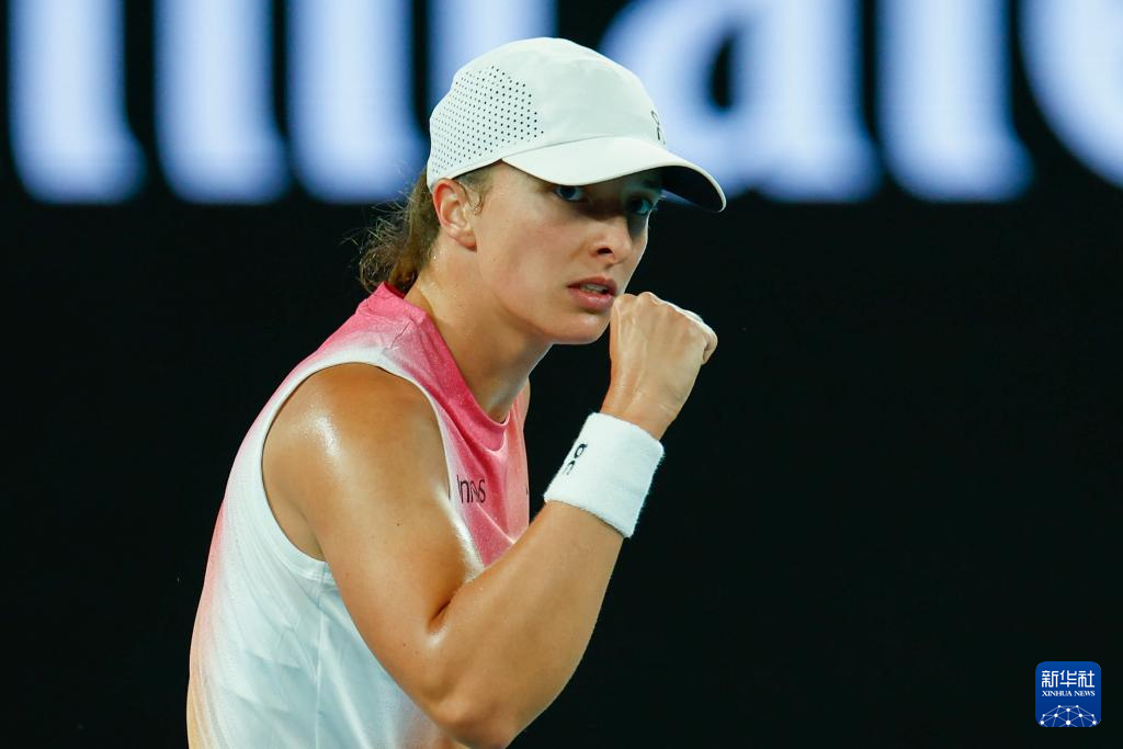 1月23日,斯维亚特克在比赛中庆祝得分。