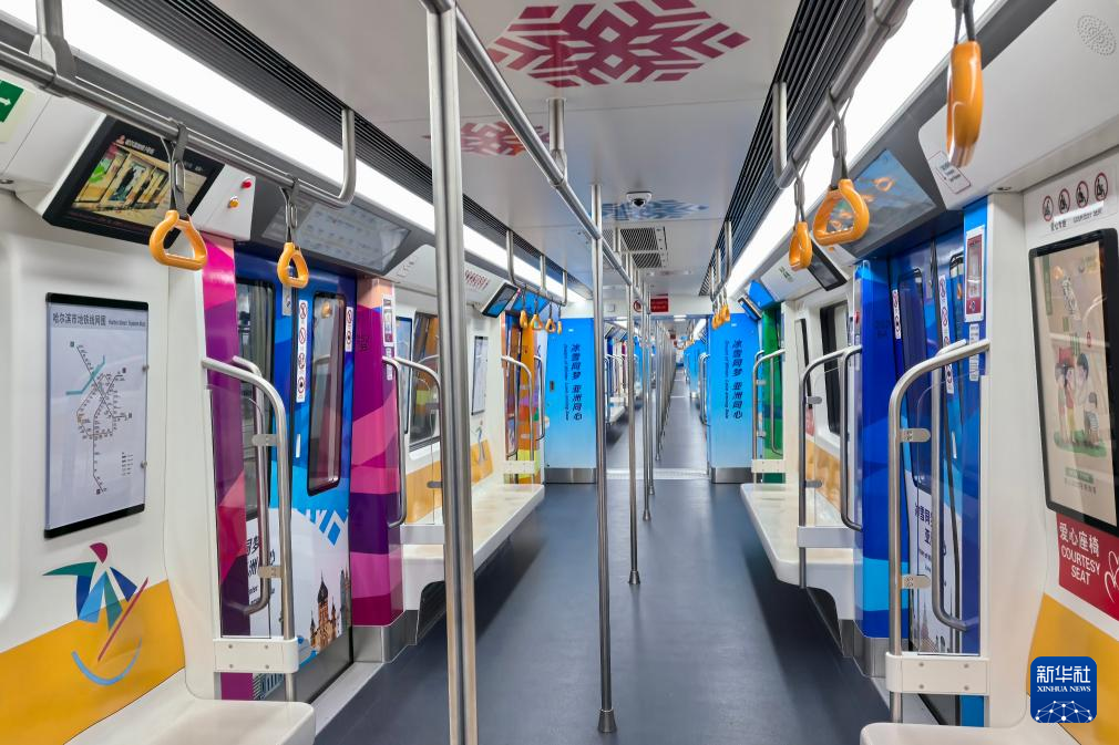 这是1月27日拍摄的哈尔滨地铁3号线“逐梦亚冬号”主题专列车厢内景观。新华社发