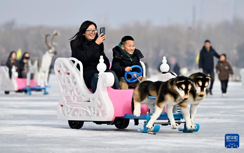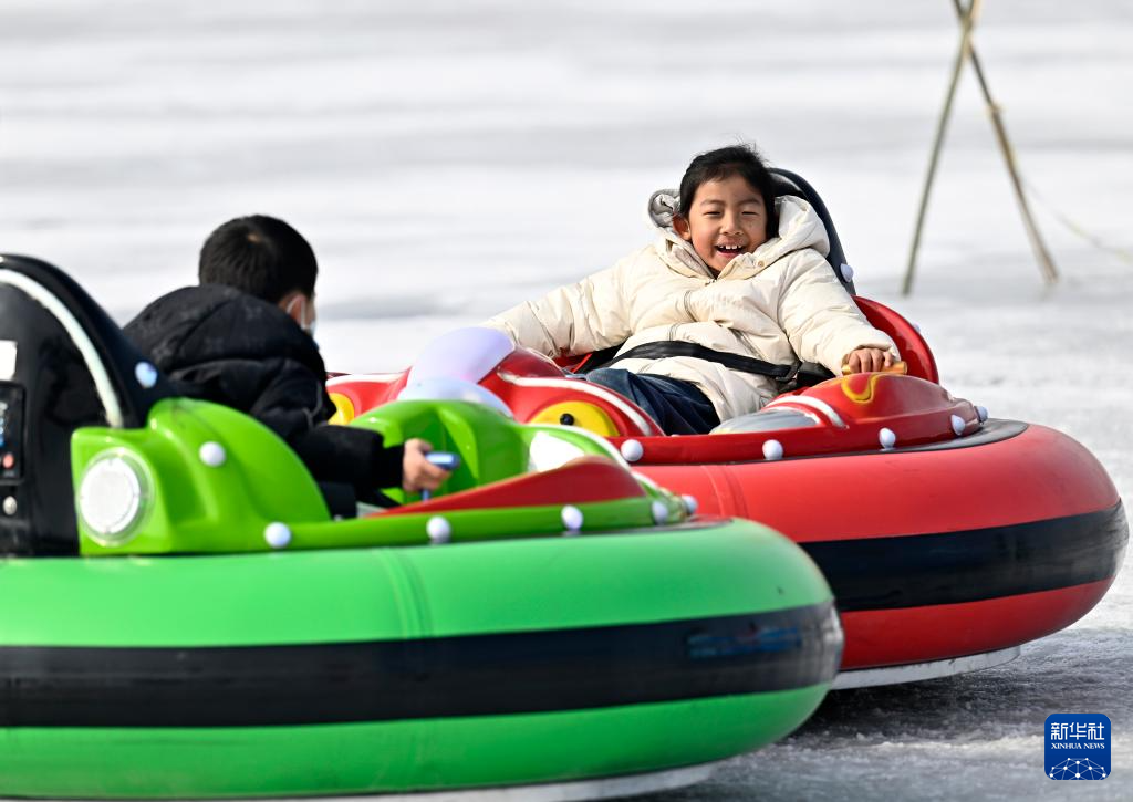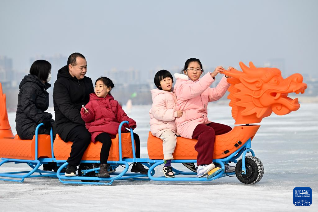 当日是农历大年初二,众多市民来到宁夏银川市北塔湖体验冰上运动,欢度春节。