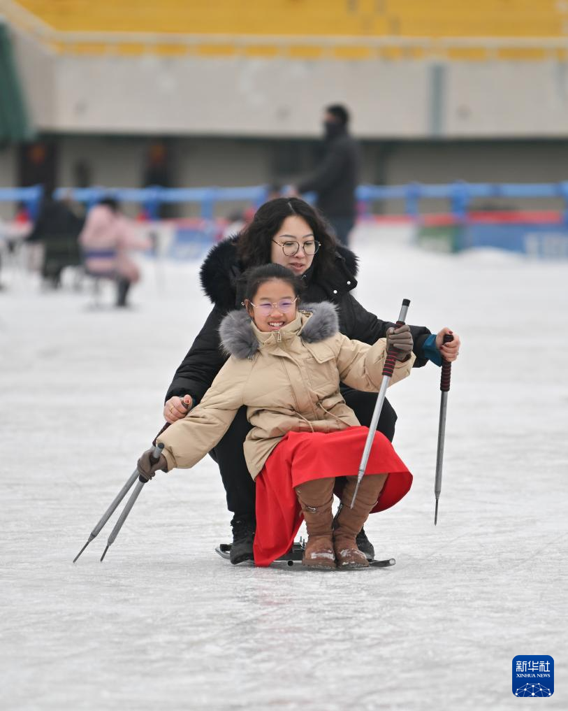 当日是农历正月初三,许多市民来到天津火车头体育场内新建成的陆上滑冰场体验冰上运动的乐趣。入冬以来,天津火车头体育场将原有的足球场地转换成为总面积约11000平方米的户外冰场,满足了市民春节假期户外滑冰、健身娱乐的需求。