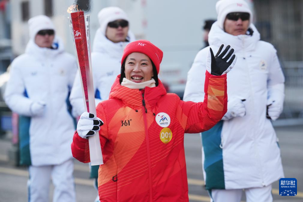 2月3日,第一棒火炬手、奥运冠军申雪在传递火炬。新华社记者 王松 摄