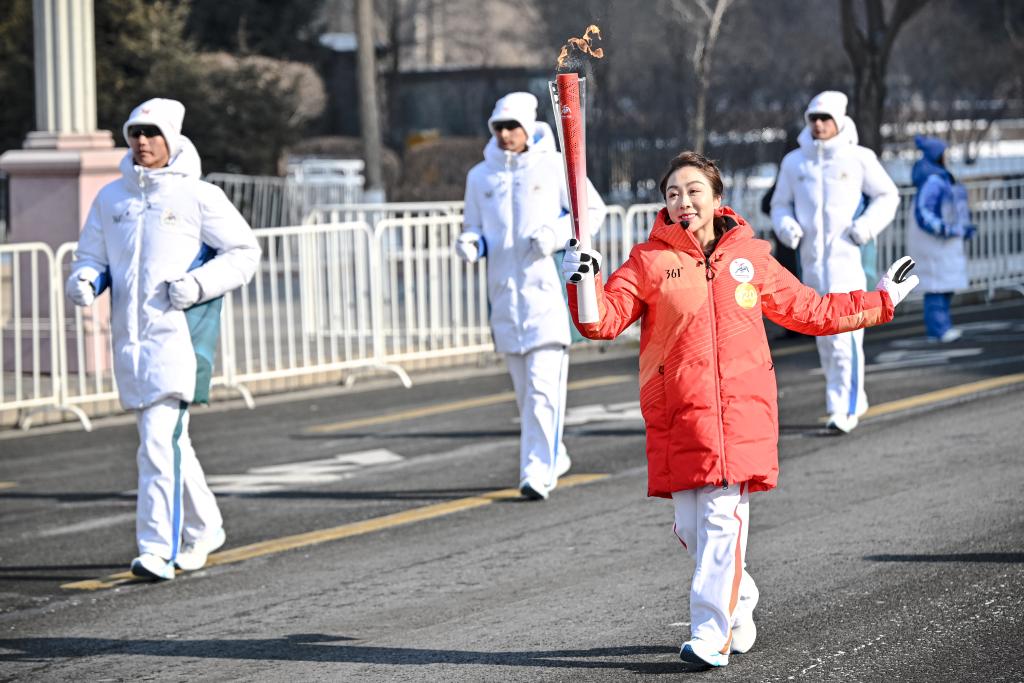 2月3日,火炬手隋文静在传递火炬。新华社记者 江汉 摄