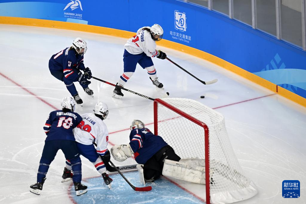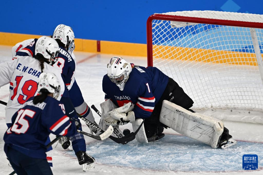 当日,在哈尔滨冰球馆举行的第九届亚冬会女子冰球小组赛B组第一轮比赛中,中国台北4比1战胜泰国队。
