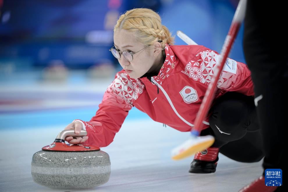 2月4日,日本队选手小穴桃里在比赛中掷壶。
