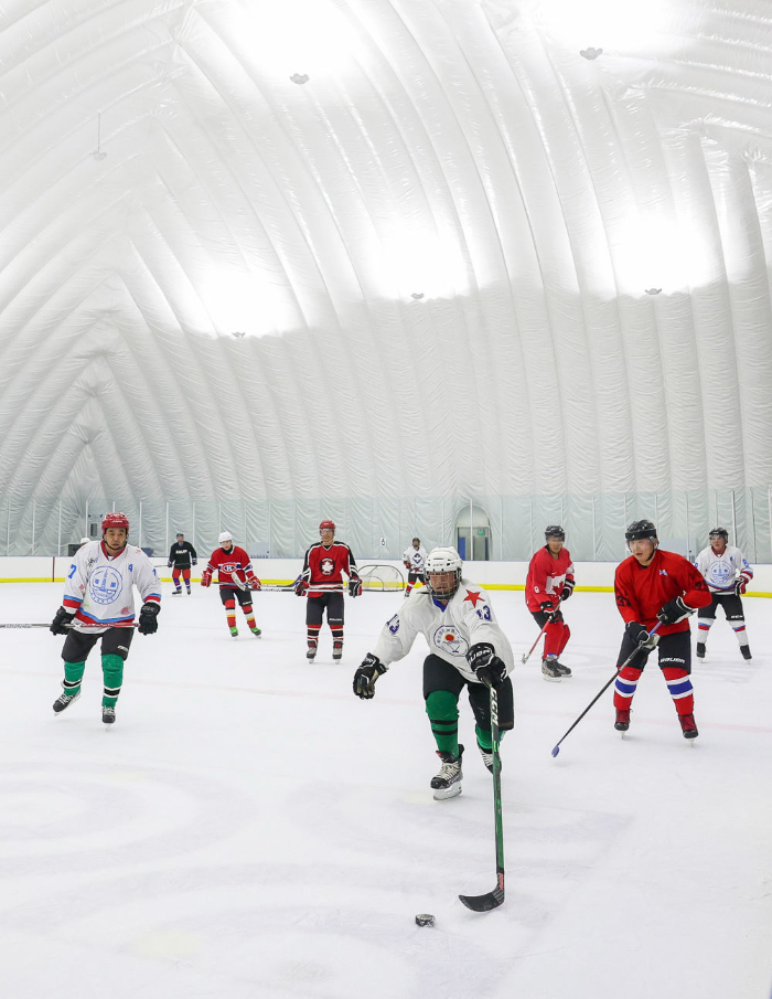 2025年1月17日,孙作新在哈尔滨市道里区冰上运动中心打冰球。