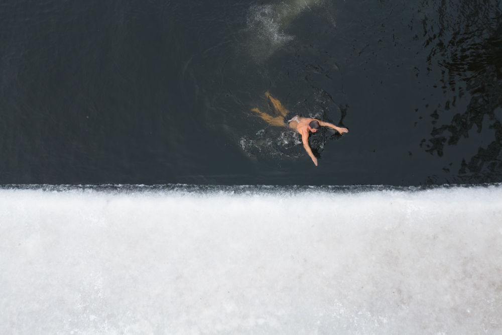 2025年1月1日,冬泳爱好者在松花江哈尔滨段进行冬泳。