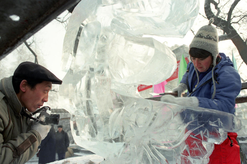哈尔滨一年一度的冰雪节吸引许多中外冰雕艺术家前来献艺 (1989年4月6日发)。 新华社记者周确摄