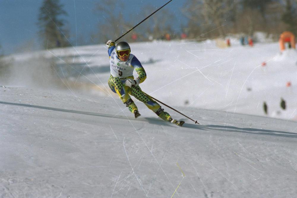 1996年2月5日,韩国选手卞钟文在第三届亚冬会高山滑雪男子超级大回转项目中获得金牌。新华社记者袁满摄