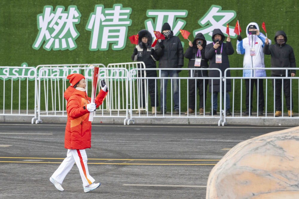 2025年2月3日,第一棒火炬手、奥运冠军申雪在哈尔滨传递第九届亚冬会火炬。