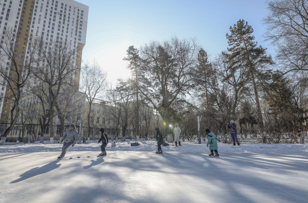 2025年1月7日,滑冰爱好者在哈尔滨丁香公园内滑冰。
