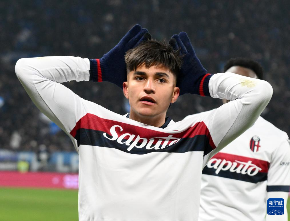 2月4日,博洛尼亚队球员卡斯特罗庆祝进球。