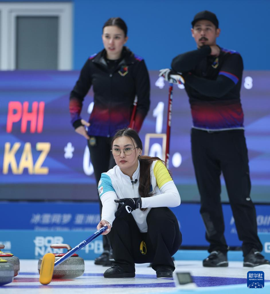 当日,在哈尔滨举行的第九届亚冬会冰壶混双循环赛B组第8轮比赛中,哈萨克斯坦队2比11不敌菲律宾队。