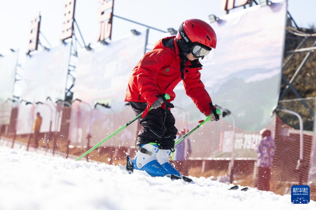 1月5日,小朋友在宜昌市夷陵区百里荒滑雪场滑雪。