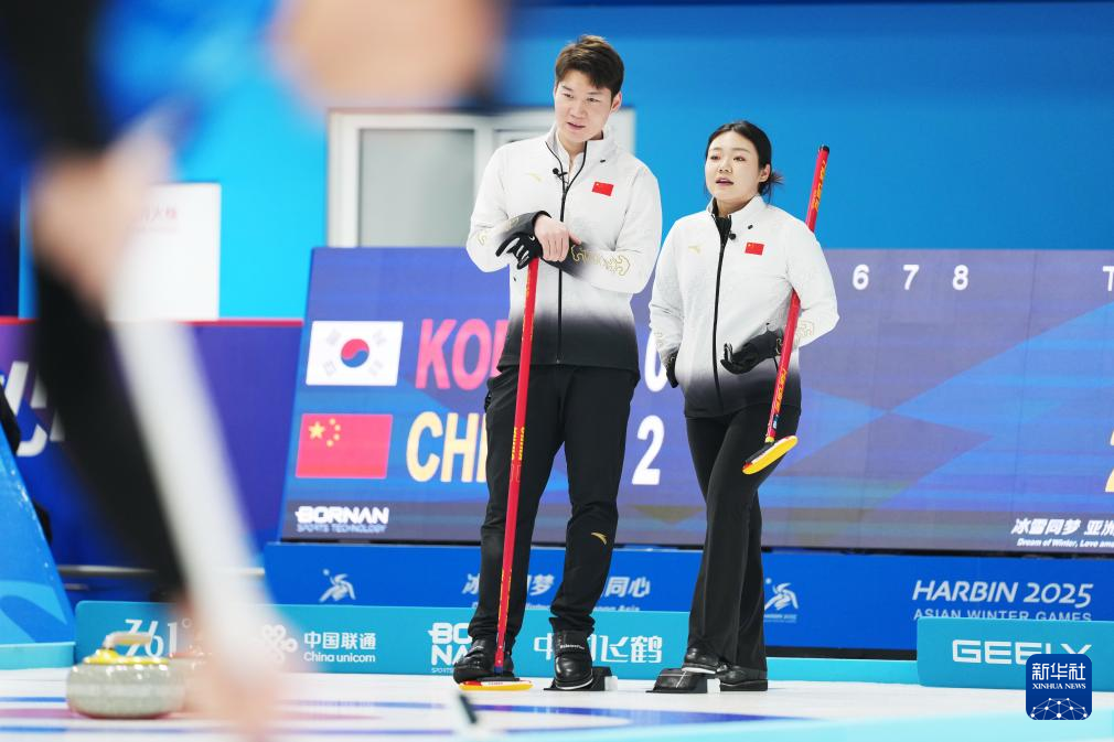 当日,在哈尔滨举行的第九届亚冬会冰壶混双循环赛B组第6轮比赛中,中国队6比4战胜韩国队。
