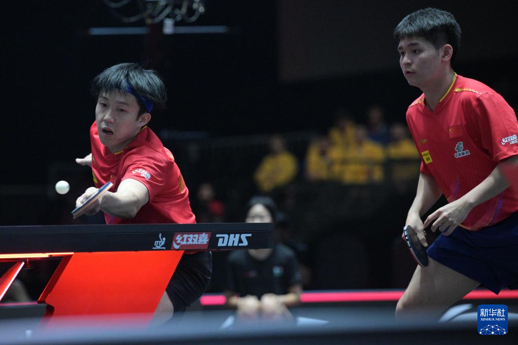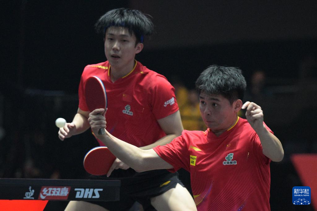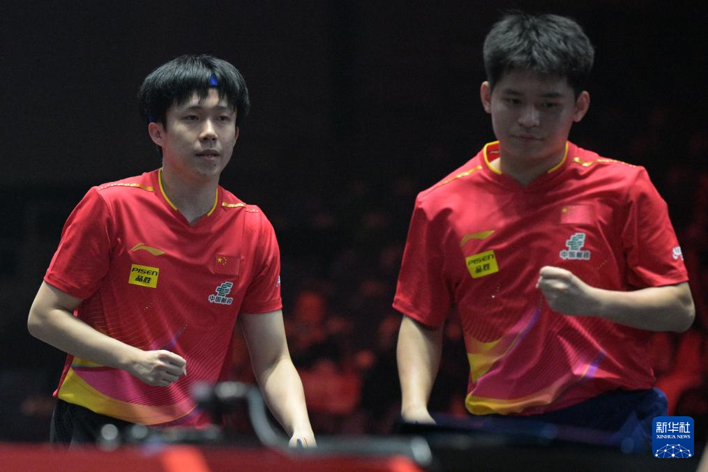 2月6日,王楚钦/林诗栋(右)在比赛中。