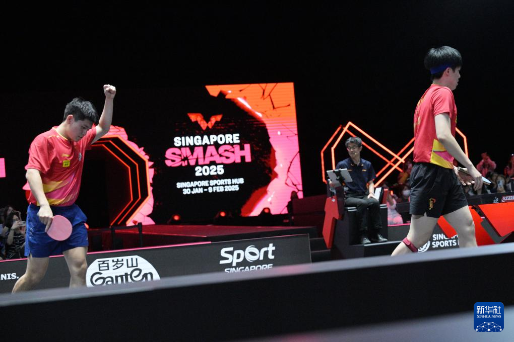 当日,在世界乒乓球职业大联盟(WTT)新加坡大满贯男双四分之一决赛中,中国组合王楚钦/林诗栋3比1战胜瑞典组合卡尔松/法尔克,晋级半决赛。