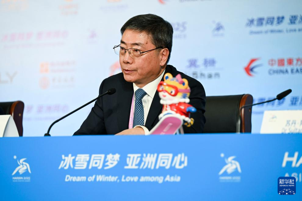 2月6日,亚冬会组委会大型活动部副部长、新闻发言人周巍在媒体吹风会上发言。