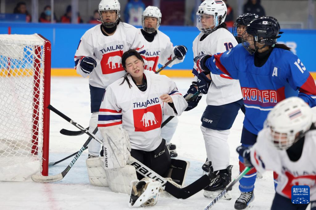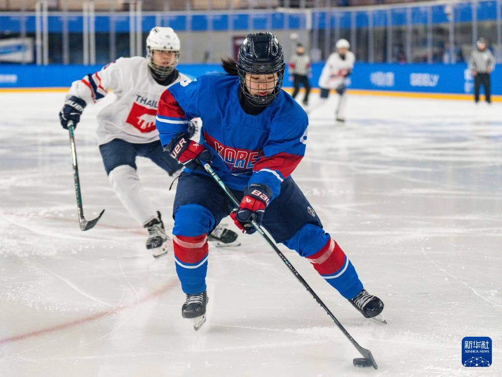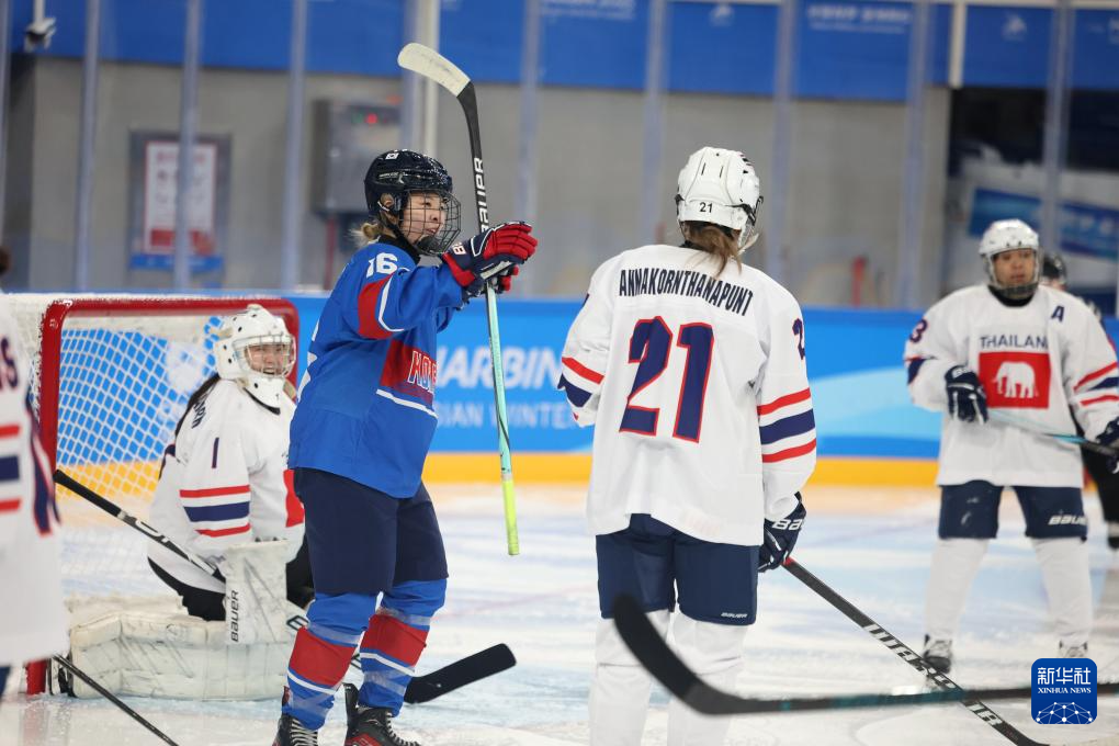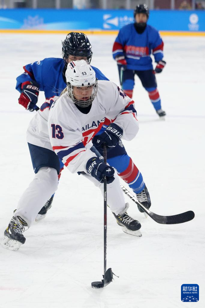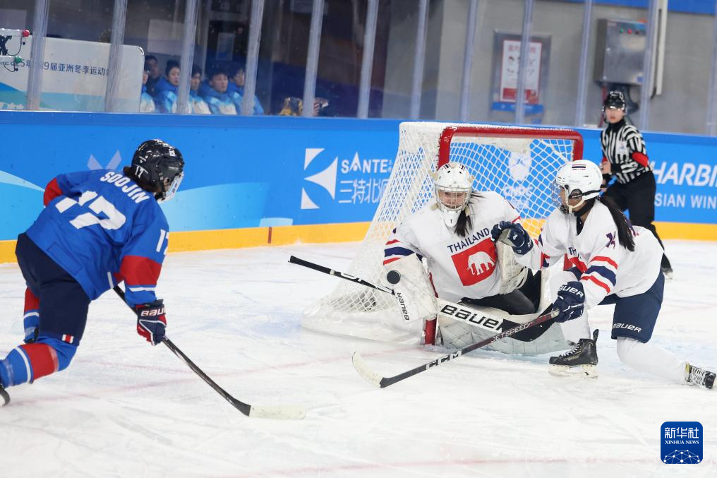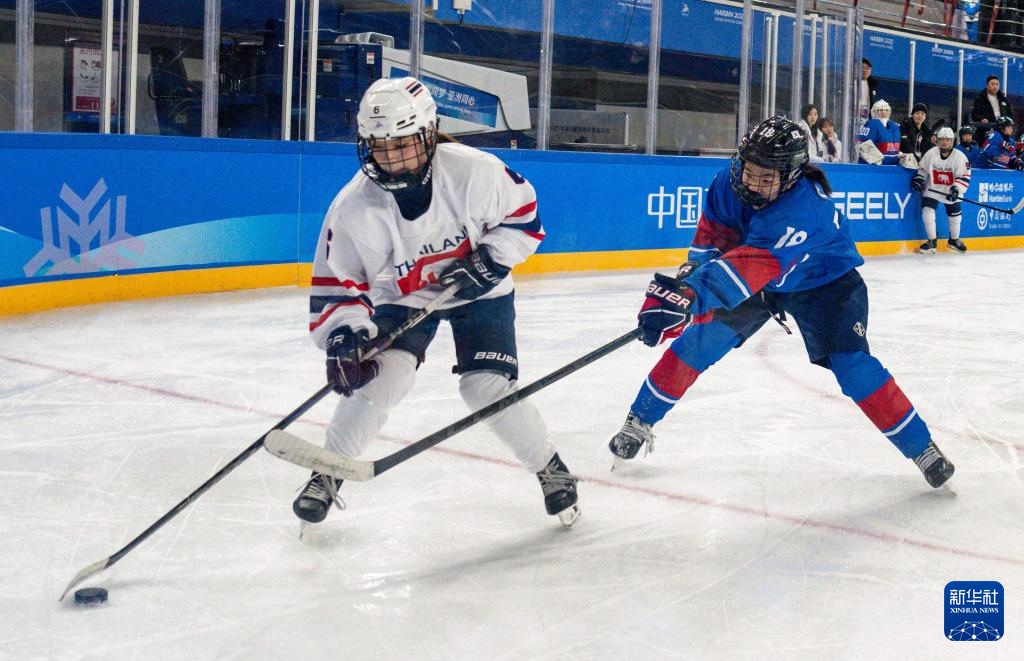 当日,在哈尔滨体育学院大学生滑冰馆举行的2025年第九届亚冬会女子冰球小组赛B组比赛中,韩国队11比0战胜泰国队。