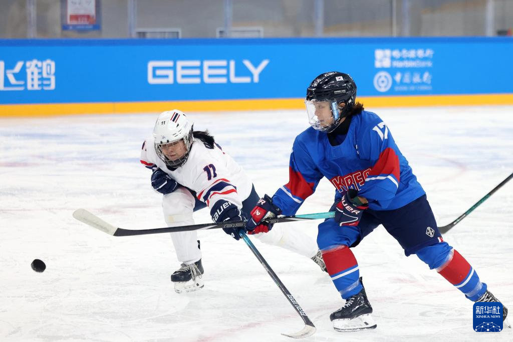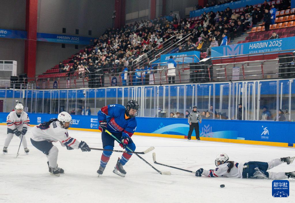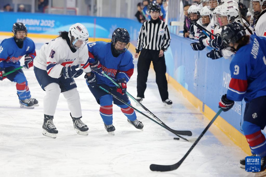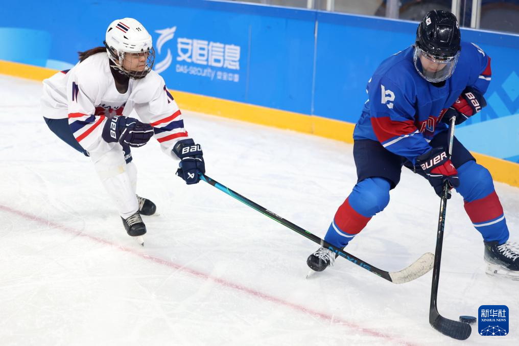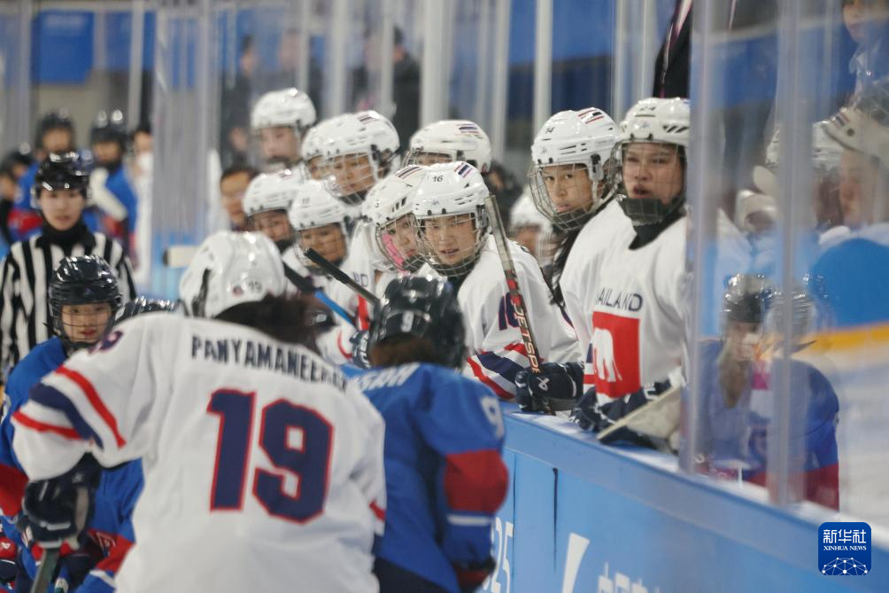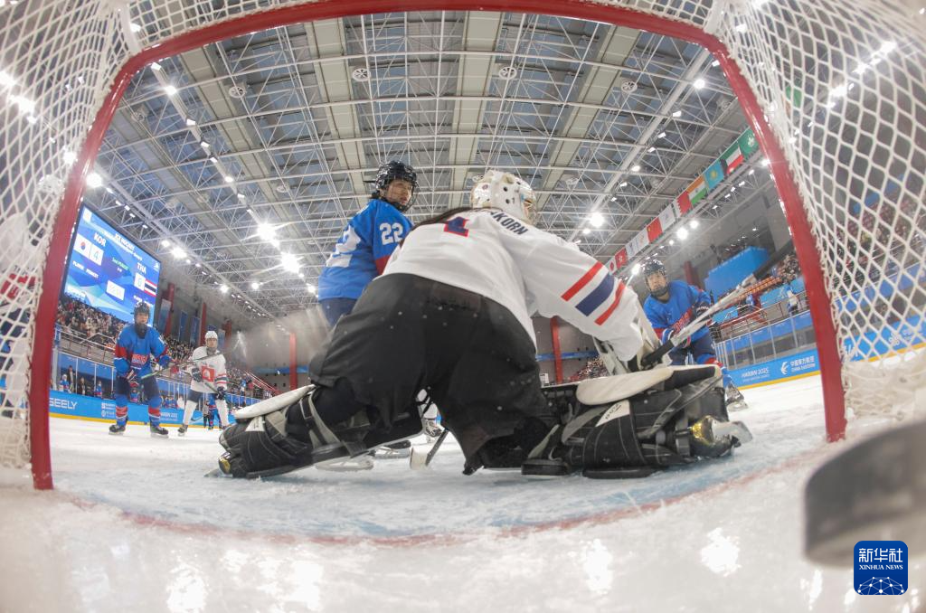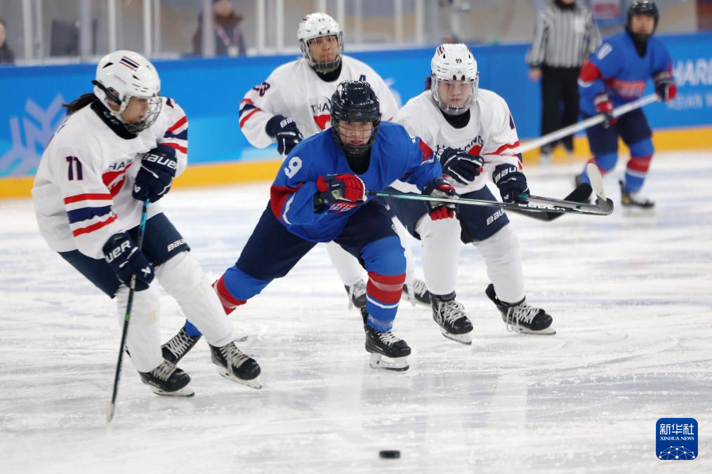 当日,在哈尔滨体育学院大学生滑冰馆举行的2025年第九届亚冬会女子冰球小组赛B组比赛中,韩国队11比0战胜泰国队。