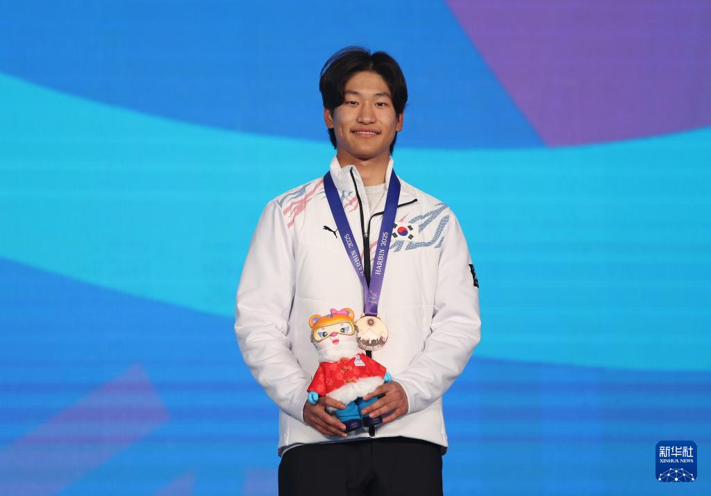 2月8日,韩国选手姜栋勋在颁奖仪式上。