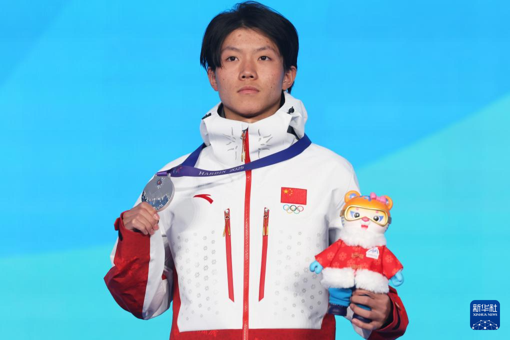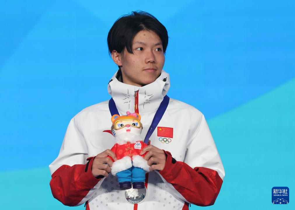 2月8日,中国选手刘昊宇在颁奖仪式上。