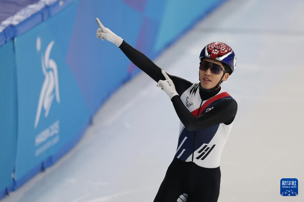 当日,第九届亚冬会短道速滑男子1500米A组决赛在哈尔滨举行。