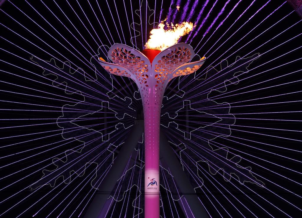 在开幕式后的新闻发布会上,亚冬会组委会大型活动部副部长周巍说,点火仪式在世界最大的冰雪主题乐园中进行,主火炬塔设计灵感来源于哈尔滨市花——丁香花,在空中俯瞰呈现出冰雪之中花朵绽放的效果,让大家从哈尔滨的寒冷中感受到温暖和力量。
