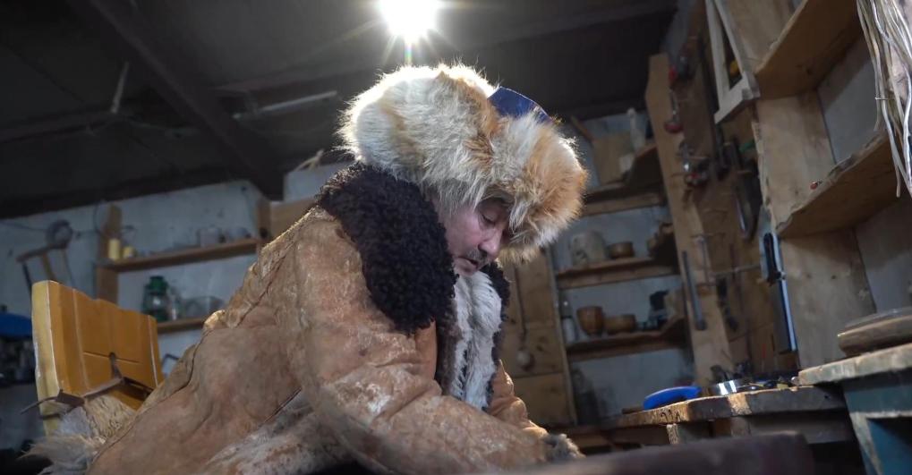 斯兰别克·沙合什家住新疆阿勒泰市拉斯特乡,他从爷爷那里学会了制作毛皮滑雪板这项传统的技艺。
