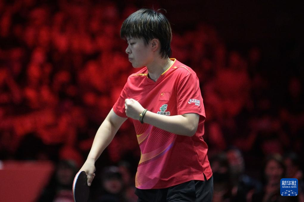 2月8日,孙颖莎在比赛中庆祝。