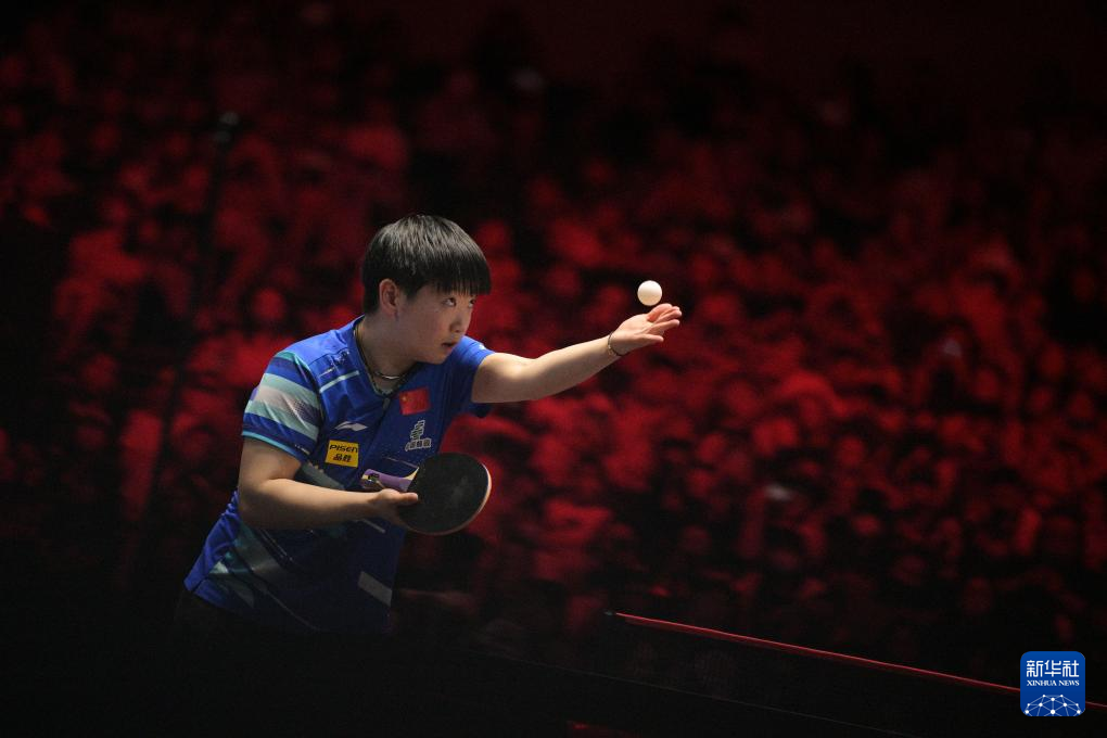 2月8日,孙颖莎在比赛中发球。