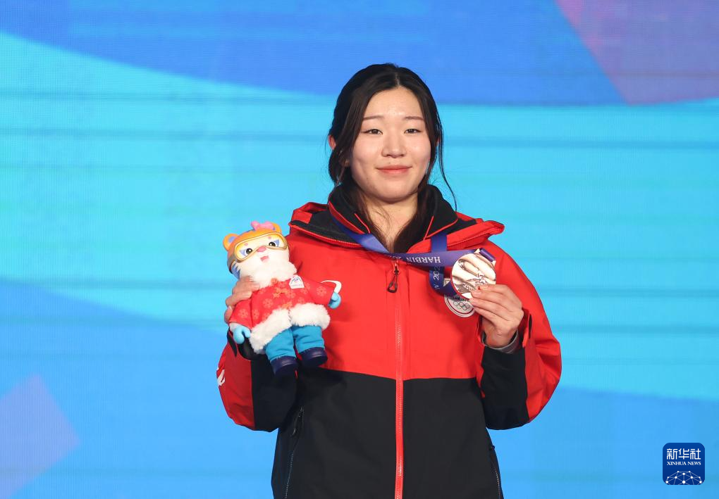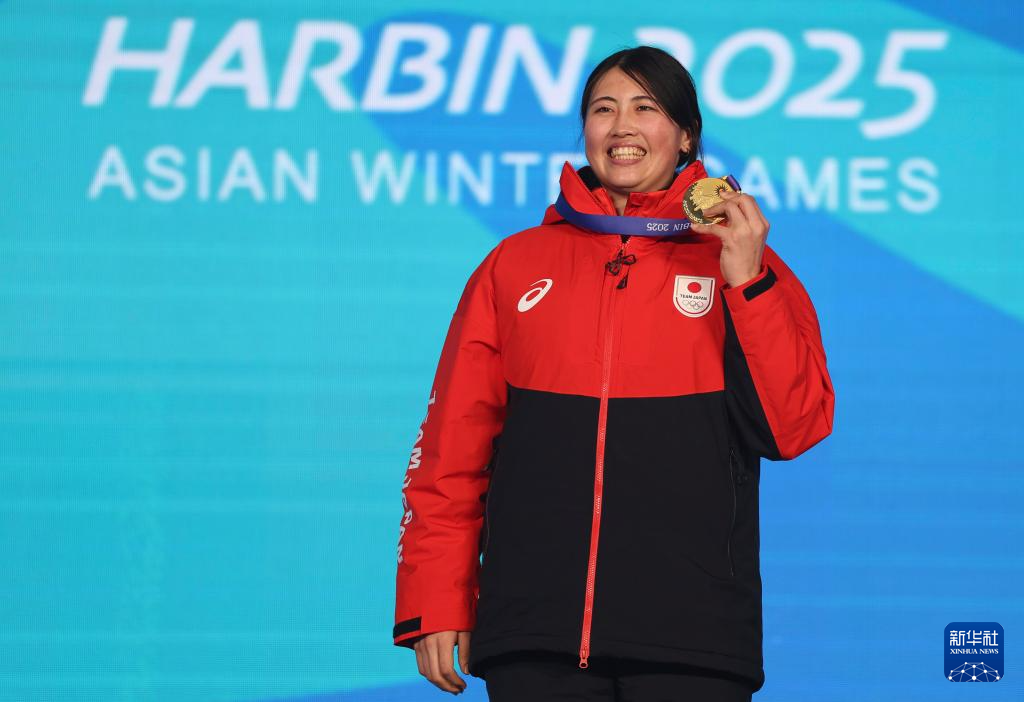 2月8日,日本选手前田知沙树在颁奖仪式上。