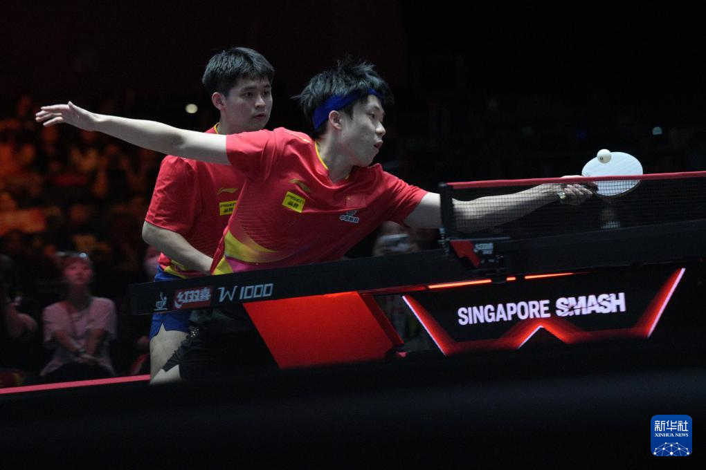 当日,在世界乒乓球职业大联盟(WTT)新加坡大满贯男双决赛中,中国组合王楚钦/林诗栋3比0战胜中国台北组合林昀儒/高承睿,夺得冠军。