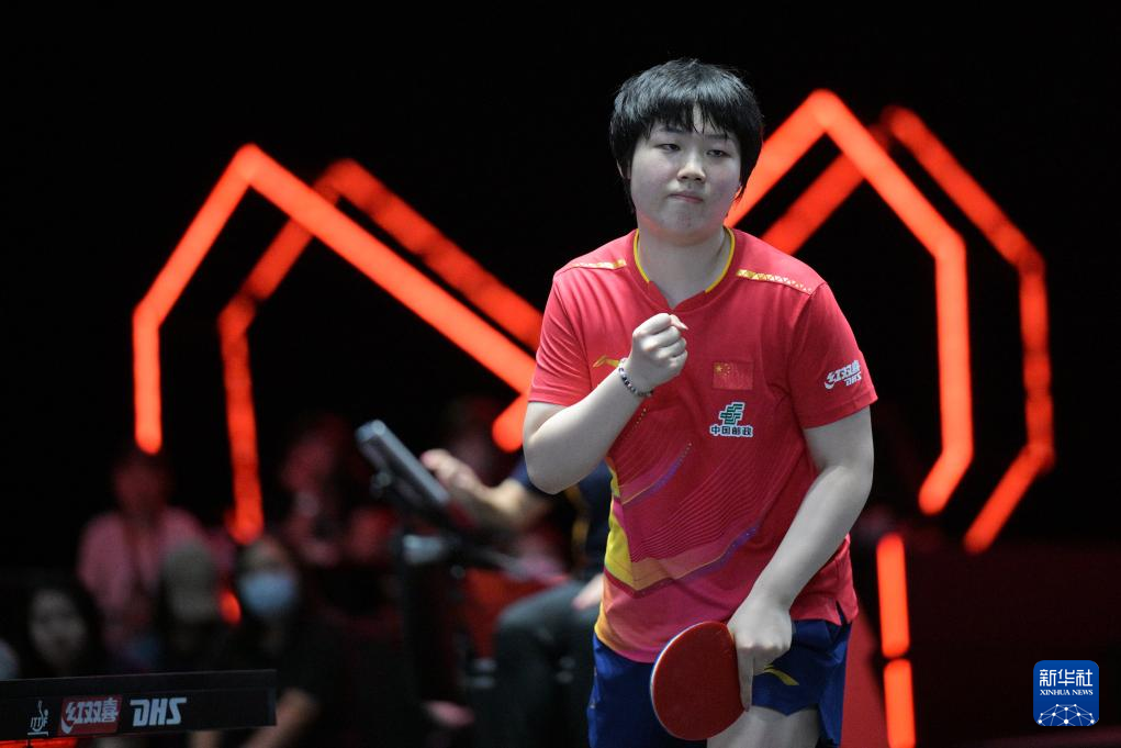 当日,在世界乒乓球职业大联盟(WTT)新加坡大满贯女单半决赛中,中国选手蒯曼4比2战胜中国选手陈幸同,晋级决赛。