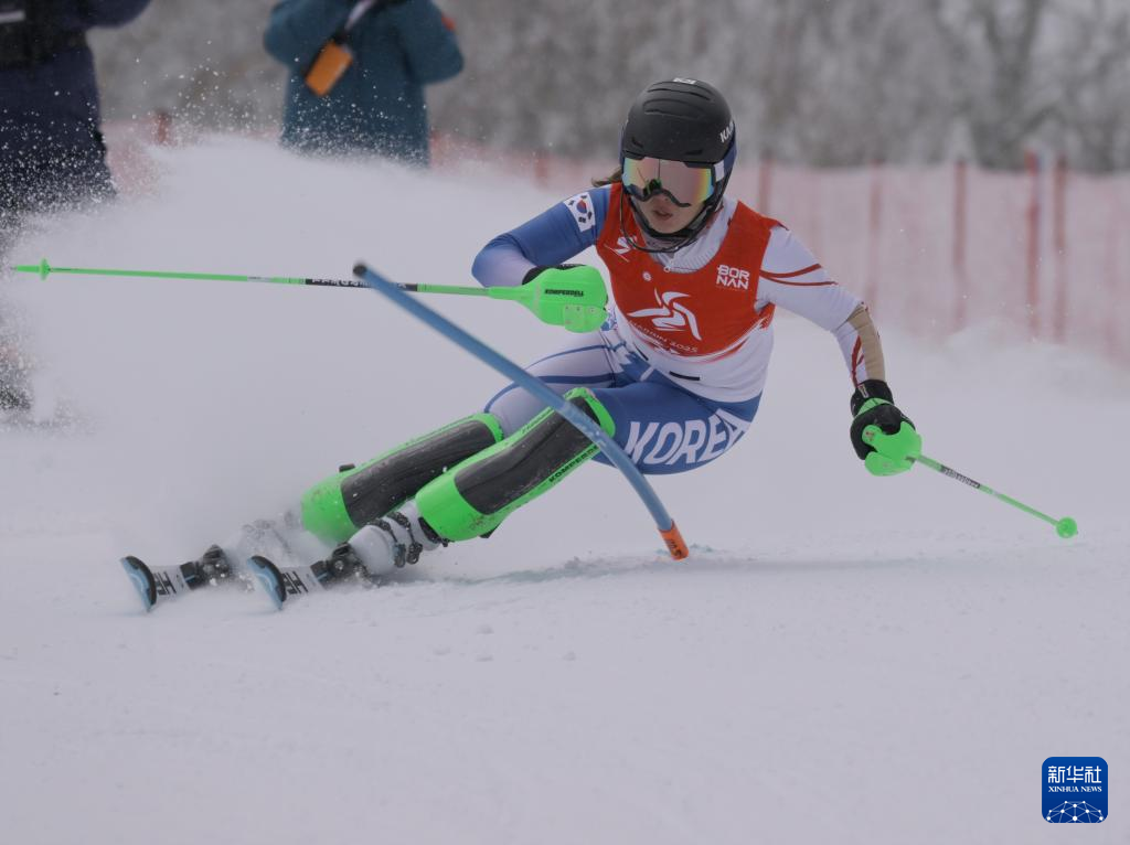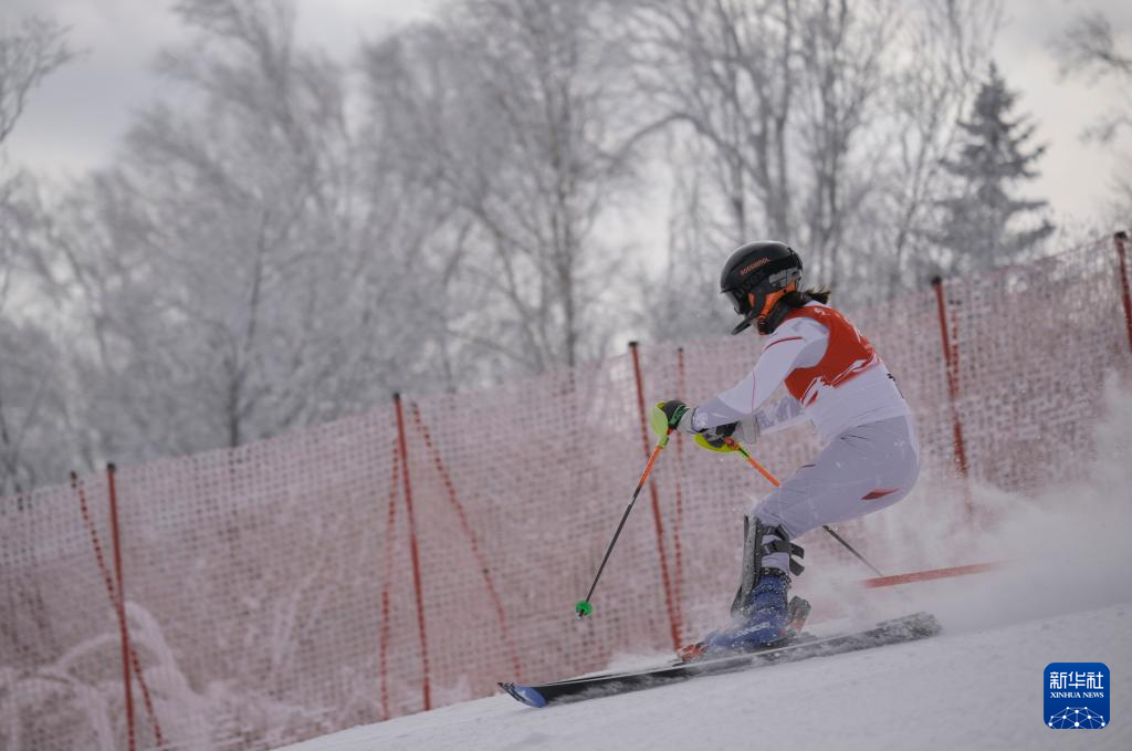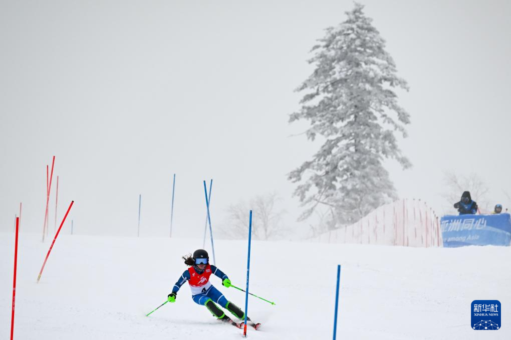 当日,第九届亚冬会高山滑雪女子回转比赛在亚布力赛区举行。