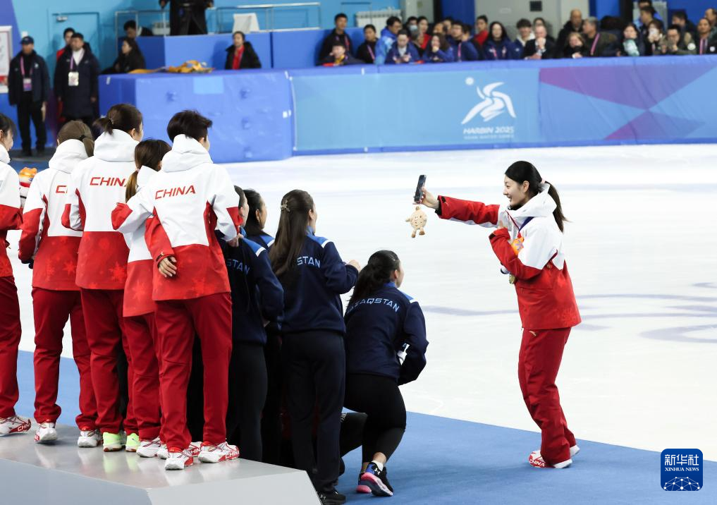 当日,第九届亚冬会短道速滑女子3000米接力比赛颁奖仪式在哈尔滨举行。