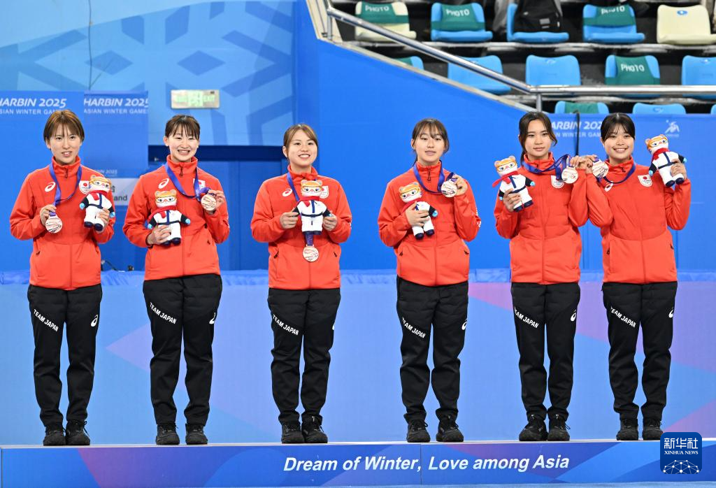 2月9日,季军日本队选手在颁奖仪式上。