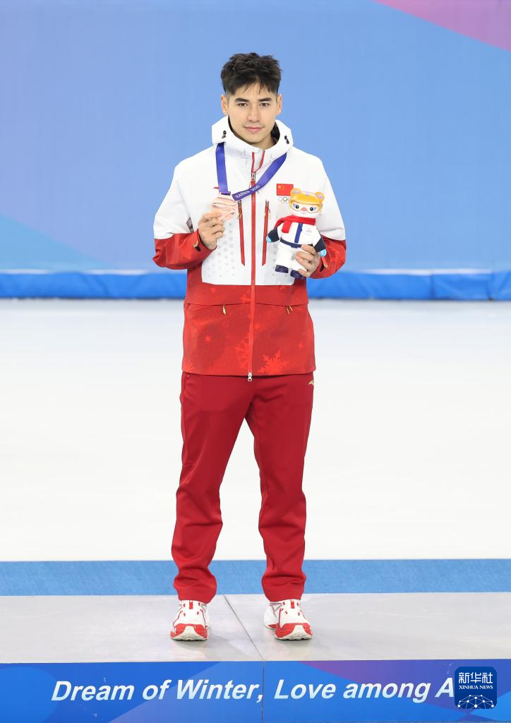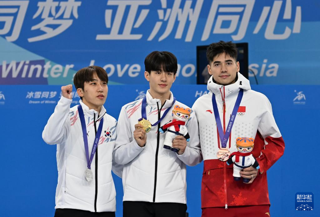 当日,第九届亚冬会短道速滑男子1000米颁奖仪式在哈尔滨举行。