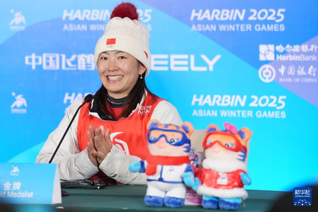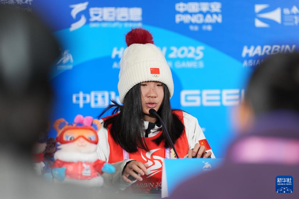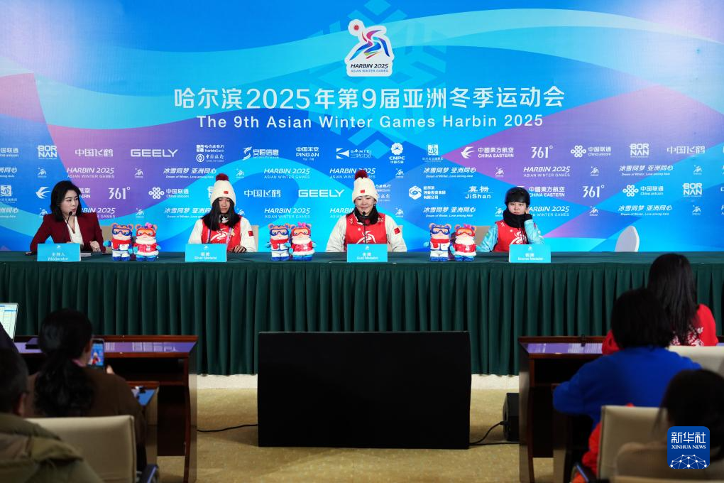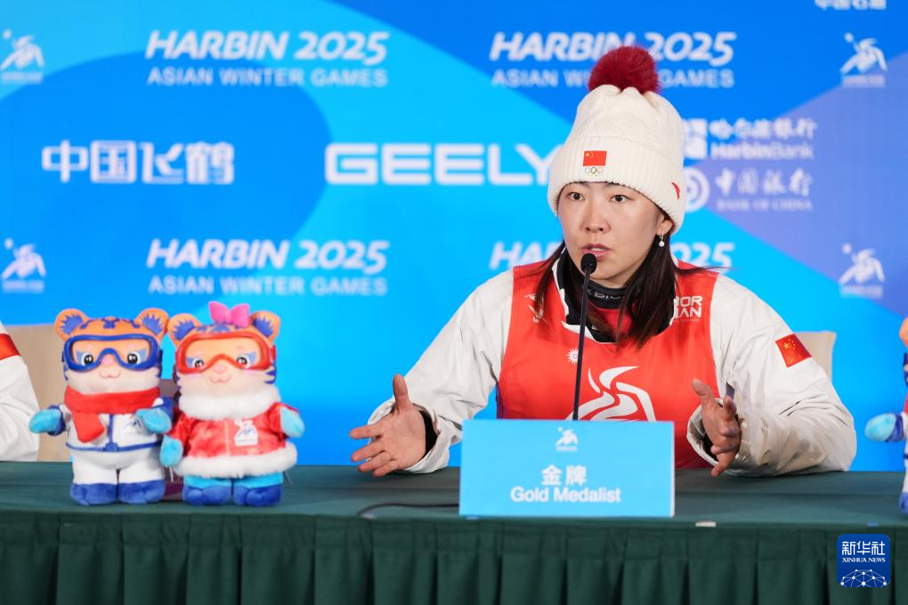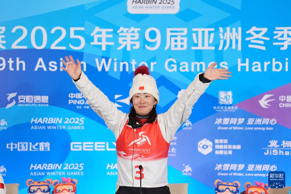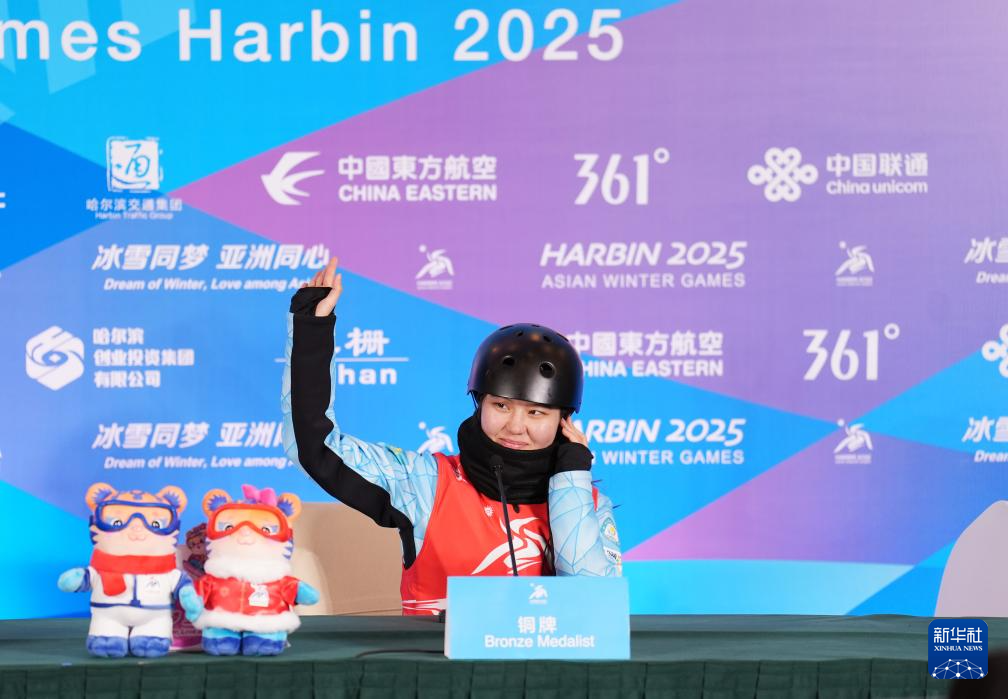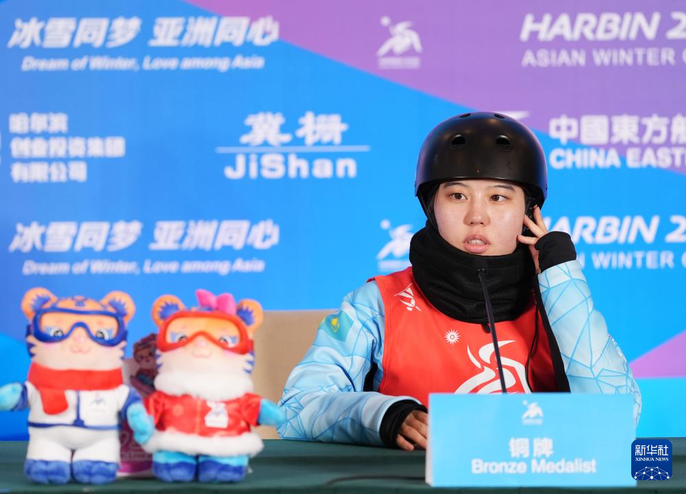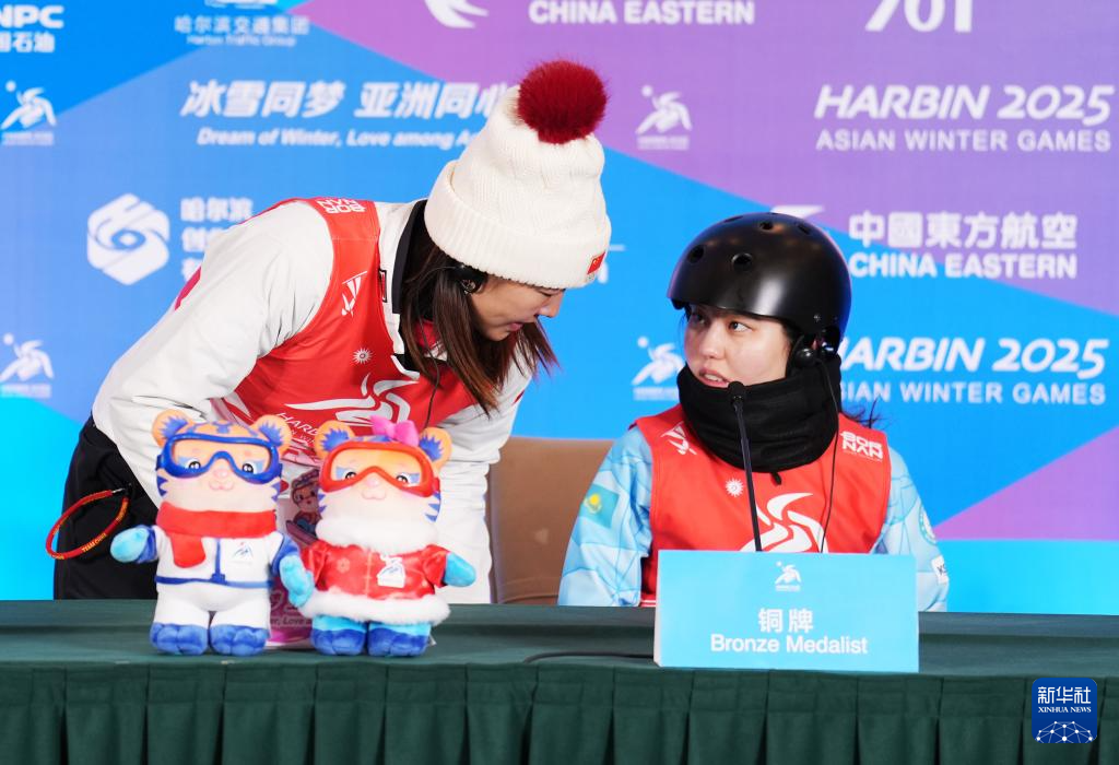 当日,第九届亚冬会自由式滑雪女子个人空中技巧赛后新闻发布会在亚布力举行。