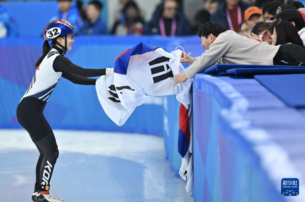 当日,第九届亚冬会短道速滑女子1000米A组决赛在哈尔滨举行。