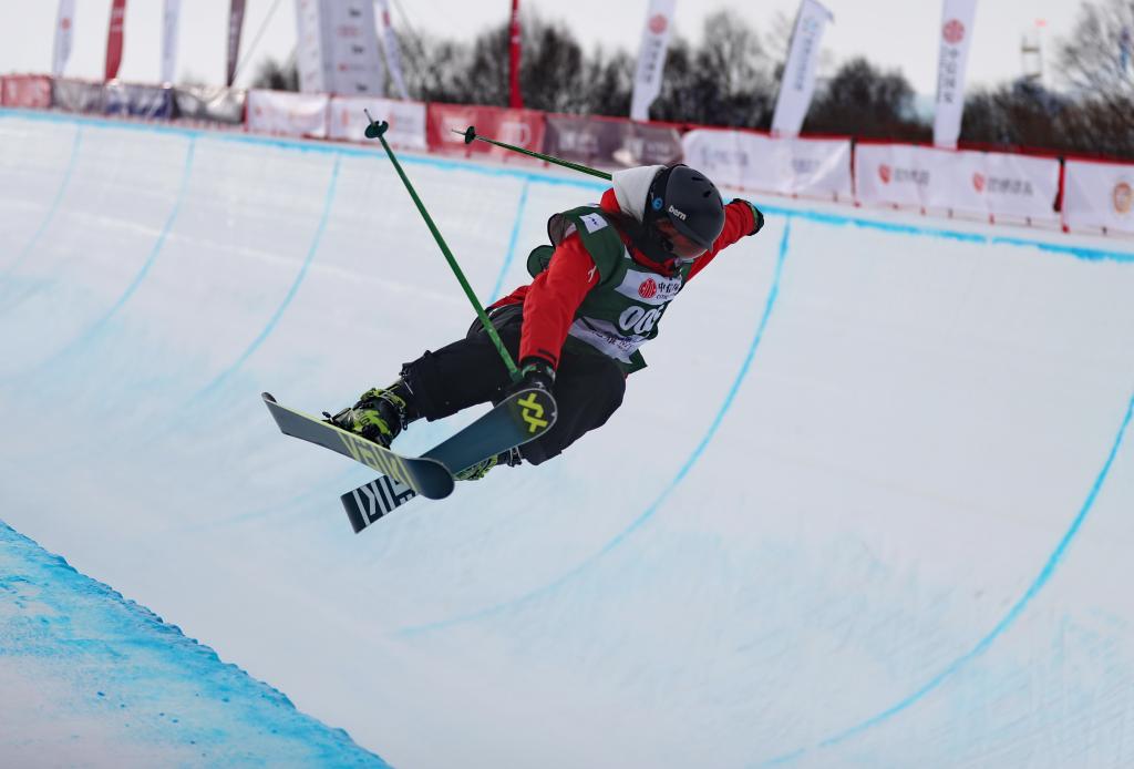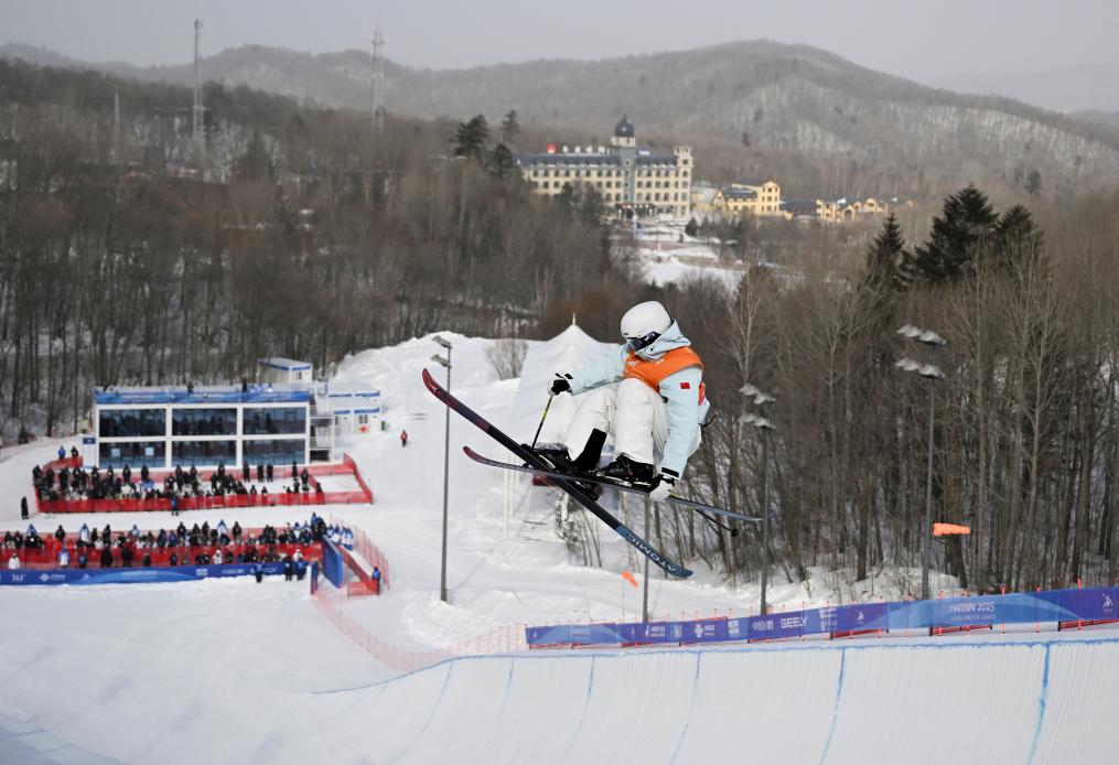 2月8日,李方慧在第九届亚冬会自由式滑雪女子U型场地技巧比赛中。新华社记者 夏一方 摄