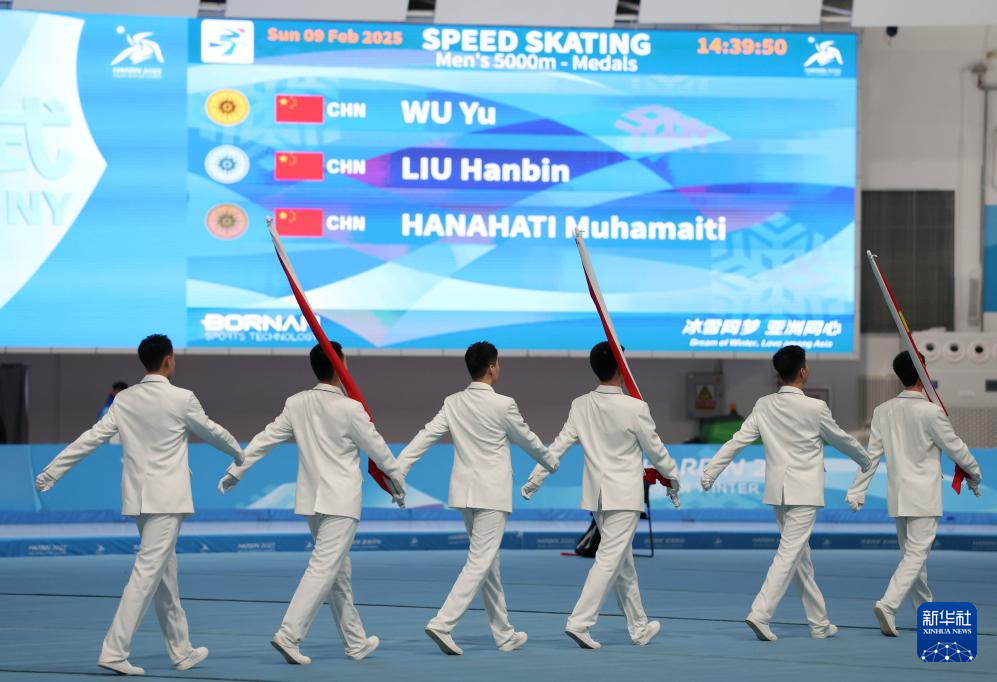 当日,在哈尔滨举行的第九届亚冬会速度滑冰男子5000米比赛中,中国选手吴宇、刘瀚彬、哈那哈提·木哈买提分别获得冠、亚、季军。