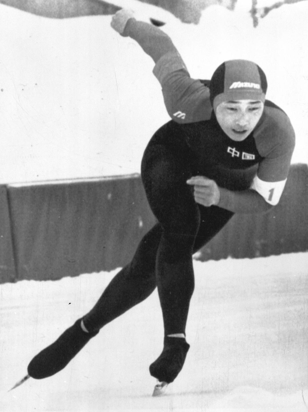 1986年3月3日,中国运动员王秀丽在日本举行的第一届亚洲冬运会女子1000米速滑比赛中获得金牌。图为王秀丽在比赛中。传真照片(新华社发)