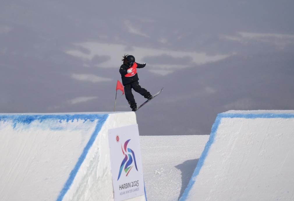 2月8日,李方慧在比赛中。当日,在第九届亚冬会自由式滑雪女子U型场地技巧决赛中,中国选手李方慧获得金牌,这是中国体育代表团在本届亚冬会上的首枚金牌。新华社记者 夏一方 摄